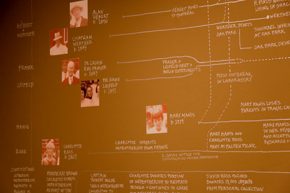 | Biographical timeline of terrarium collectors (installation view) | ||||||||||||||||||